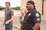 los tres guardias de seguridad, con C. J. (Michael Kelly), se