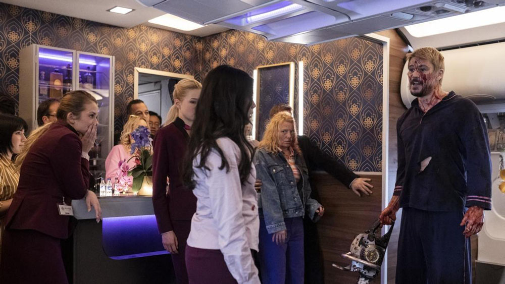 Aun así, la película deja clara su identidad de disparate desde el principio, por lo que apenas molestan esas deficiencias interpretativas (además, no duran mucho en pantalla, porque van siendo eliminados a un ritmo trepidante), las lagunas en el guion (¿alguien nos puede explicar cómo no se ha detectado una motosierra en el control de equipajes?) o su textura televisiva, una patología clásica del cine moderno.