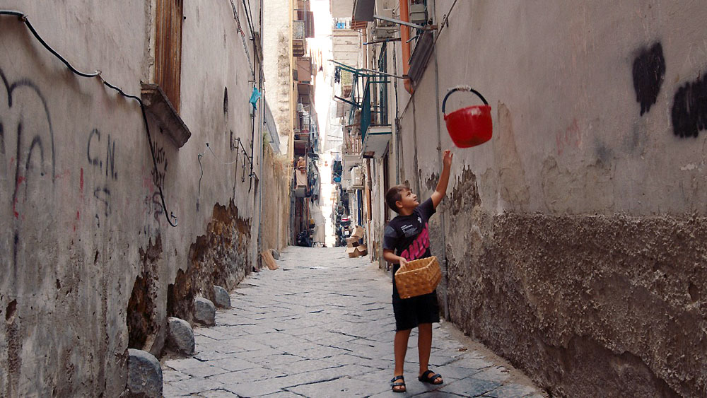 La comida, la presencia de la religión, y la música, tradicional o no (se escucha Una furtiva lágrima junto a las canciones típicas napolitanas). No falta ningún tópico, pues hasta Maradona aparece por allí. En definitiva, nada que no se sepa y nada que cuestione la idea conocida, y un poco cansina ya, de la imagen del sur de Italia. Y nada que resulte problemático, pues la mafia tiene su pequeño rincón, casi como un peaje obligatorio, Roberto Saviano incluido, pero ningún protagonismo relevante.
