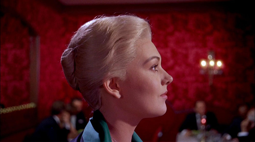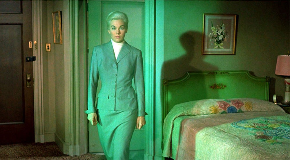 La primera conversación en el hotel casi nos convence de que es otra persona, pero cuando se queda sola su mirada la delata totalmente. De hecho, Hitchcock ha cambiado de perspectiva. Ahora vemos la situación desde la perspectiva de Judy. En un flashback se sobrepone el plano de la torre de la misión. Vemos la secuencia completa, ella recuerda cómo sube a la torre y cómo Elster tira por la torre abajo a la verdadera Madeleine, su mujer, previamente estrangulada.