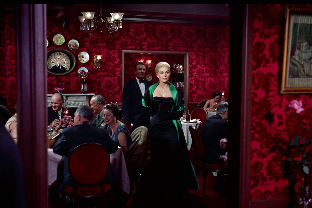 La ciudad como escenario de la acción de unos personajes solitarios, flotantes, nos lleva a ver sugerencias pictóricas del estilo de Edward Hopper por todas partes. En el coche, múltiples planos, en el restaurante Ernie’s, frente a la barra, ella bajo el puente Golden Gate en plano general, de perfil mientras da un paso adelante. Aquí incluso el plano de los coches acercándose recoge una casa de playa típica de los cuadros de Hopper. Él saliendo a mirar a la puerta (roja) de su casa, cómo se va ella. Ella de perfil en la ventana del hotel, sentada. Él sentado en el hotel, con el sombrero. Él esperando a la puerta de la habitación del hotel, el pasillo del hotel, etc.